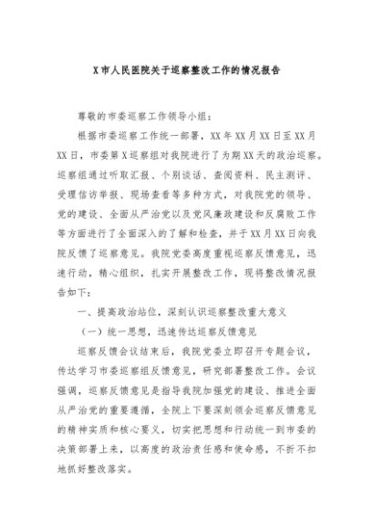 / 【七哥公文】2024年:X市人民医院关于巡察整改工作的情况报告+更多免费公文+VX:QiGeGongWen2024