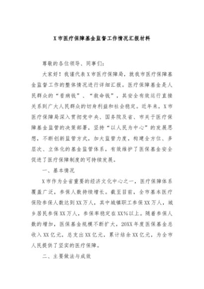 / 【七哥公文】2024年:X市医疗保障基金监督工作情况汇报材料+更多免费公文+VX:QiGeGongWen2024