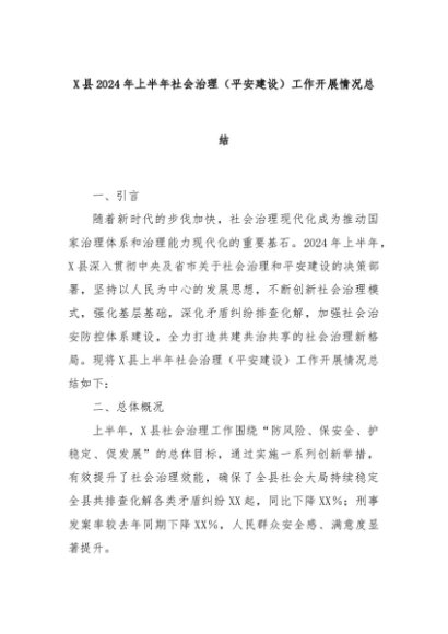 【七哥公文】2024年:X县2024年上半年社会治理(平安建设)工作开展情况总结+更多免费公文+VX:QiGeGongWen2024