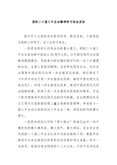 / 【七哥公文】2024年:党的二十届三中全会精神学习体会发言+更多免费公文+VX:QiGeGongWen2024