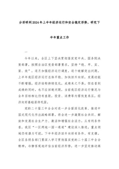 【七哥公文】2024年:分析研判2024年上半年经济运行和安全稳定形势,研究下半年重点工作+更多免费公文+VX:QiGeGongWen2024