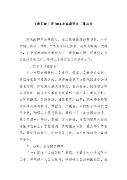 / 【七哥公文】2024年:X市某幼儿园2024年春季园务工作总结+更多免费公文+VX:QiGeGongWen2024