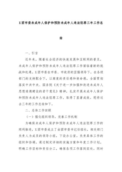 【七哥公文】2024年:X团市委未成年人保护和预防未成年人违法犯罪三年工作总结+更多免费公文+VX:QiGeGongWen2024