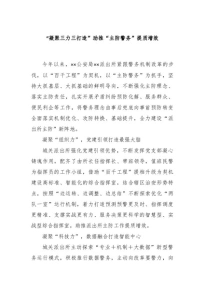 【七哥公文】2024年:“凝聚三力三打造”助推“主防警务”提质增效+更多免费公文+VX:QiGeGongWen2024