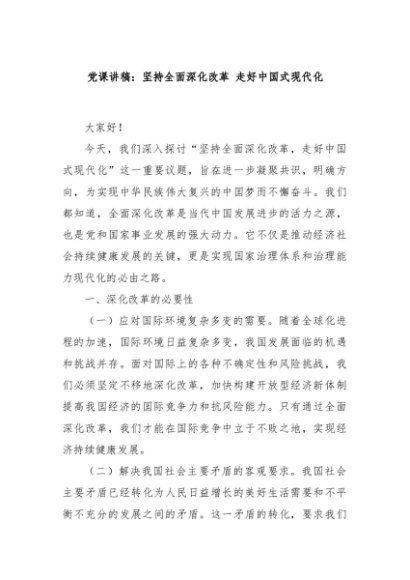 / 【七哥公文】2024年:党课讲稿:坚持全面深化改革 走好中国式现代化+更多免费公文+VX:QiGeGongWen2024
