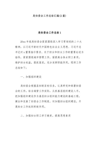/ 【七哥公文】2024年:(2篇)局妇委会工作总结汇编+更多免费公文+VX:QiGeGongWen2024