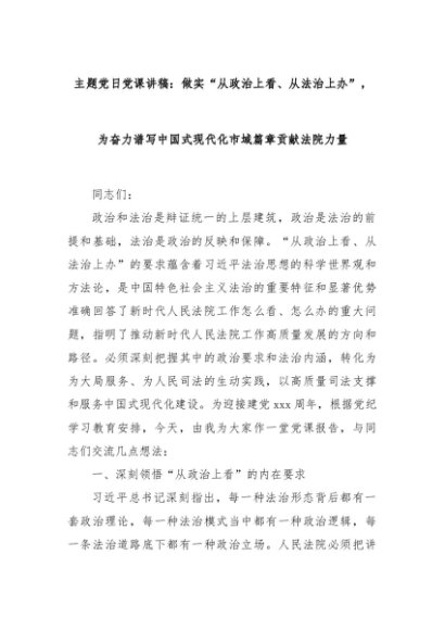 【七哥公文】2024年:主题党日党课讲稿:做实“从政治上看、从法治上办”,为奋力谱写中国式现代化市域篇章贡献法院力量+更多免费公文+VX:QiGeGongWen2024