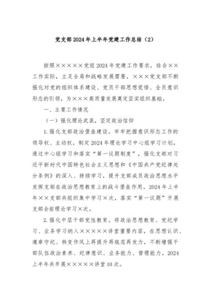 / 【七哥公文】2024年:党支部2024年上半年党建工作总结(2)+更多免费公文+VX:QiGeGongWen2024