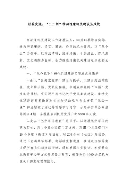/ 【七哥公文】2024年:经验交流:“三三制”推动清廉机关建设见成效+更多免费公文+VX:QiGeGongWen2024