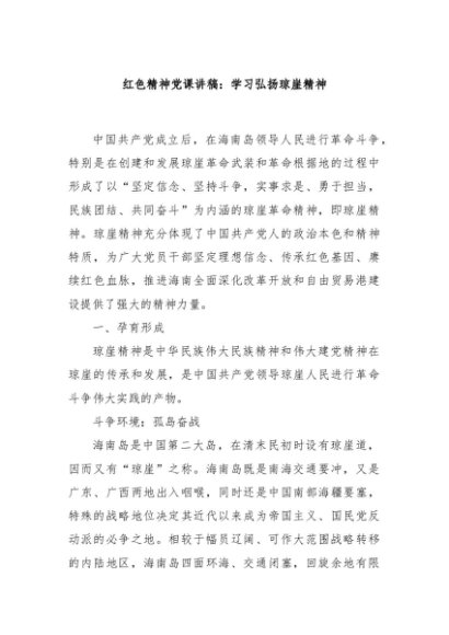 / 【七哥公文】2024年:红色精神党课讲稿:学习弘扬琼崖精神+更多免费公文+VX:QiGeGongWen2024