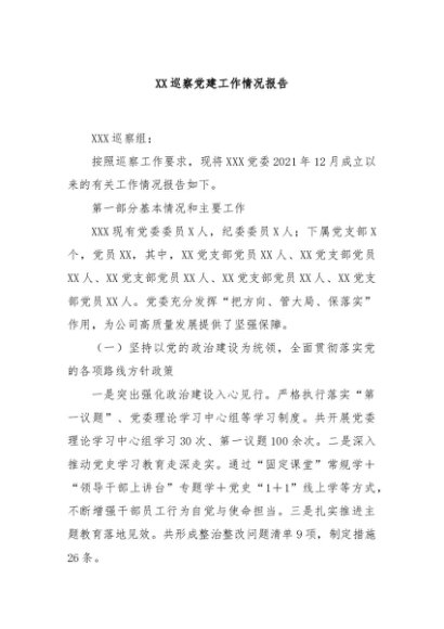 / 【七哥公文】2024年:XX巡察党建工作情况报告+更多免费公文+VX:QiGeGongWen2024