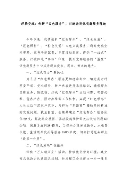 【七哥公文】2024年:经验交流:创新“四色服务”,打造亲民化党群服务阵地+更多免费公文+VX:QiGeGongWen2024