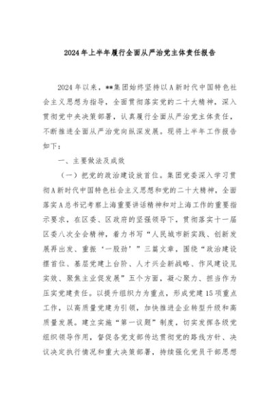 / 【七哥公文】2024年:2024年上半年履行全面从严治党主体责任报告+更多免费公文+VX:QiGeGongWen2024