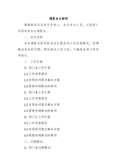 【七哥公文】2024年:调度会主持词+更多免费公文+VX:QiGeGongWen2024
