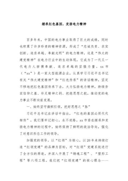 / 【七哥公文】2024年:继承红色基因,发扬电力精神+更多免费公文+VX:QiGeGongWen2024