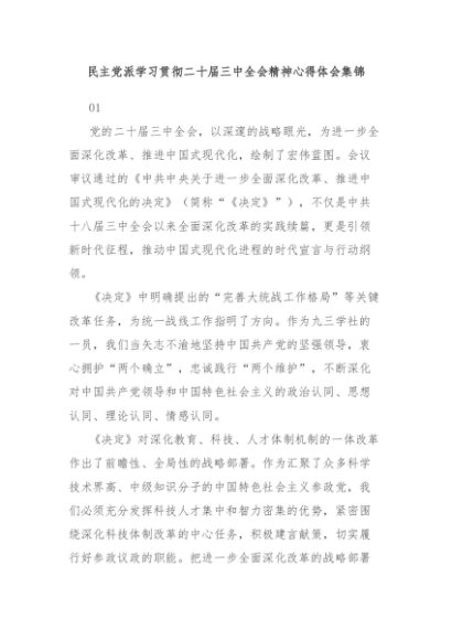 / 【七哥公文】2024年:民主党派学习贯彻二十届三中全会精神心得体会集锦+更多免费公文+VX:QiGeGongWen2024