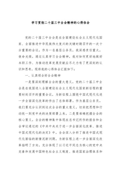 / 【七哥公文】2024年:学习贯彻二十届三中全会精神的心得体会 (1)+更多免费公文+VX:QiGeGongWen2024