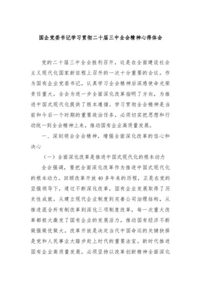 【七哥公文】2024年:国企党委书记学习贯彻二十届三中全会精神心得体会 (1)+更多免费公文+VX:QiGeGongWen2024