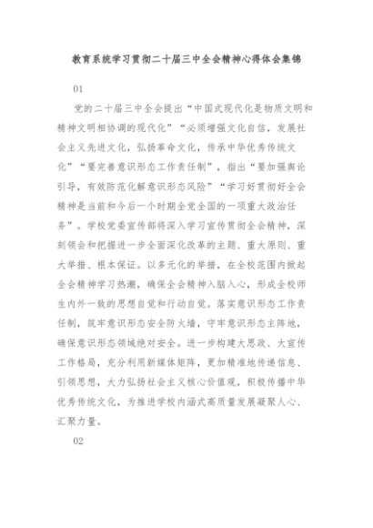 【七哥公文】2024年:教育系统学习贯彻二十届三中全会精神心得体会集锦 (1)+更多免费公文+VX:QiGeGongWen2024