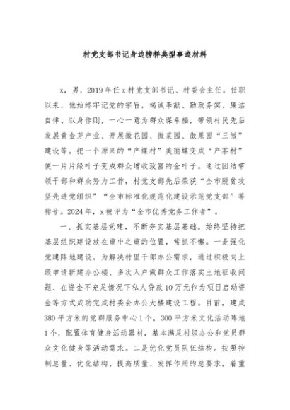 / 【七哥公文】2024年:村党支部书记身边榜样典型事迹材料+更多免费公文+VX:QiGeGongWen2024