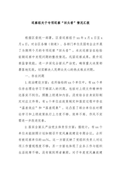 / 【七哥公文】2024年:巡察组关于专项巡察“回头看”情况汇报+更多免费公文+VX:QiGeGongWen2024