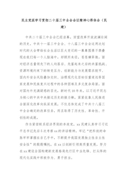 【七哥公文】2024年:民主党派学习贯彻二十届三中全会会议精神心得体会(民建)+更多免费公文+VX:QiGeGongWen2024