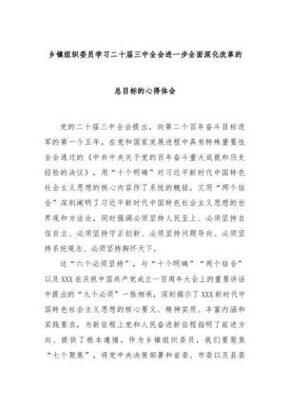 【七哥公文】2024年:乡镇组织委员学习二十届三中全会进一步全面深化改革的总目标的心得体会 (1)+更多免费公文+VX:QiGeGongWen2024