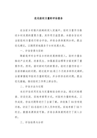 【七哥公文】2024年:优化驻村力量的评估报告+更多免费公文+VX:QiGeGongWen2024
