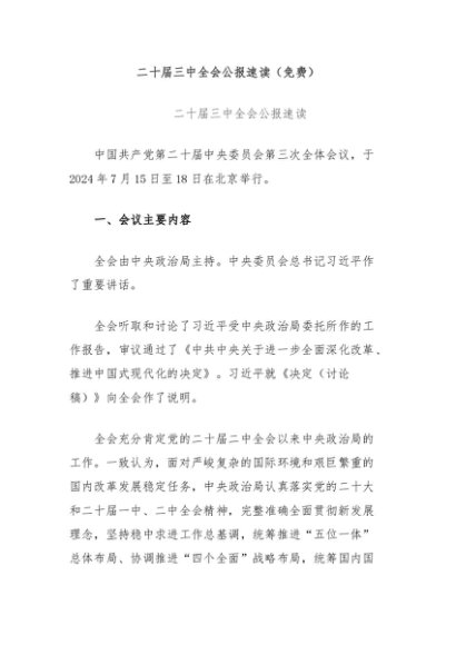 【七哥公文】2024年:二十届三中全会公报速读(免费) (1)+更多免费公文+VX:QiGeGongWen2024