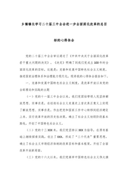 【七哥公文】2024年:乡镇镇长学习二十届三中全会进一步全面深化改革的总目标的心得体会+更多免费公文+VX:QiGeGongWen2024