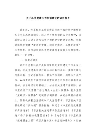 / 【七哥公文】2024年:关于机关党建工作机制建设的调研报告+更多免费公文+VX:QiGeGongWen2024