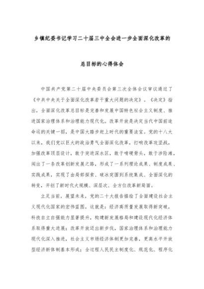 【七哥公文】2024年:乡镇纪委书记学习二十届三中全会进一步全面深化改革的总目标的心得体会+更多免费公文+VX:QiGeGongWen2024
