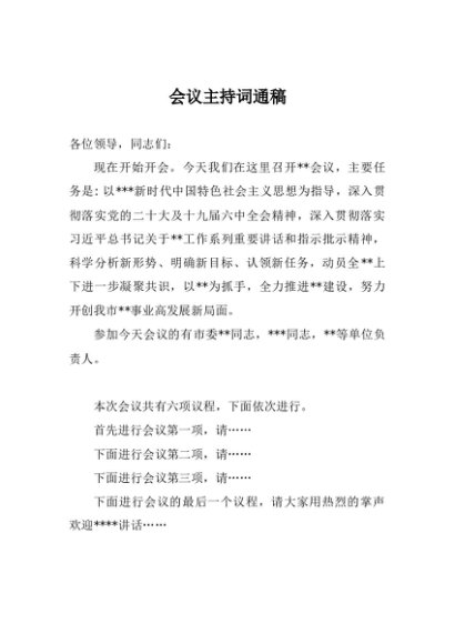 / 【七哥公文】2024年:会议主持词通稿+更多免费公文+VX:QiGeGongWen2024