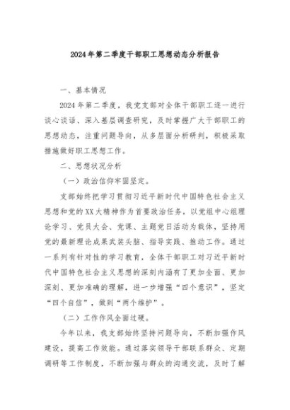 / 【七哥公文】2024年:2024年第二季度干部职工思想动态分析报告+更多免费公文+VX:QiGeGongWen2024