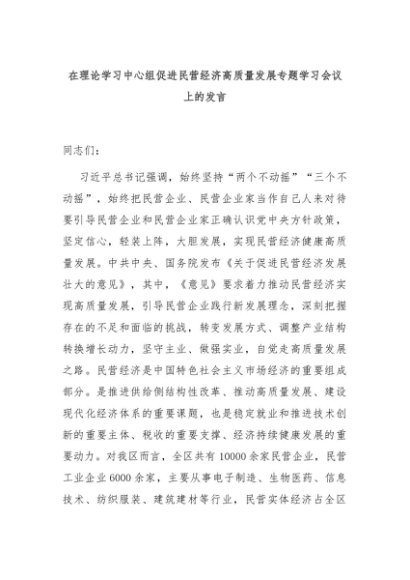 【七哥公文】2024年:在理论学习中心组促进民营经济高质量发展专题学习会议上的发言+更多免费公文+VX:QiGeGongWen2024