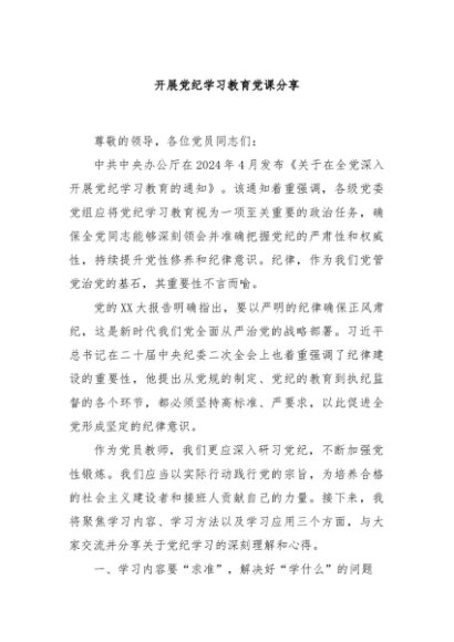 / 【七哥公文】2024年:开展党纪学习教育党课分享+更多免费公文+VX:QiGeGongWen2024
