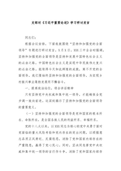 / 【七哥公文】2024年:支部对《习总书记重要论述》学习研讨发言+更多免费公文+VX:QiGeGongWen2024