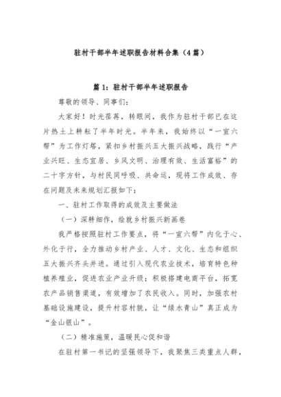 / 【七哥公文】2024年:(4篇)驻村干部半年述职报告材料合集+更多免费公文+VX:QiGeGongWen2024