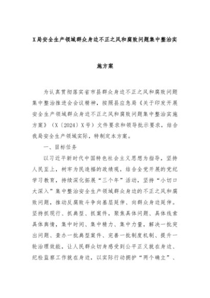 【七哥公文】2024年:X局安全生产领域群众身边不正之风和腐败问题集中整治实施方案+更多免费公文+VX:QiGeGongWen2024
