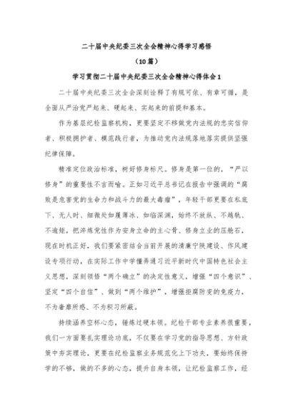 / 【七哥公文】2024年:(10篇)二十届中央纪委三次全会精神心得学习感悟+更多免费公文+VX:QiGeGongWen2024