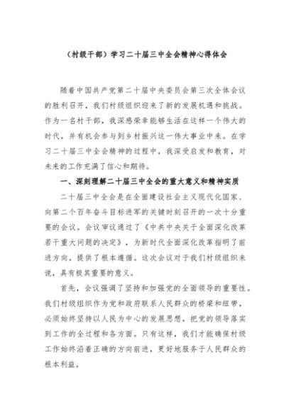 【七哥公文】2024年:(村级干部)学习二十届三中全会精神心得体会 (1)+更多免费公文+VX:QiGeGongWen2024