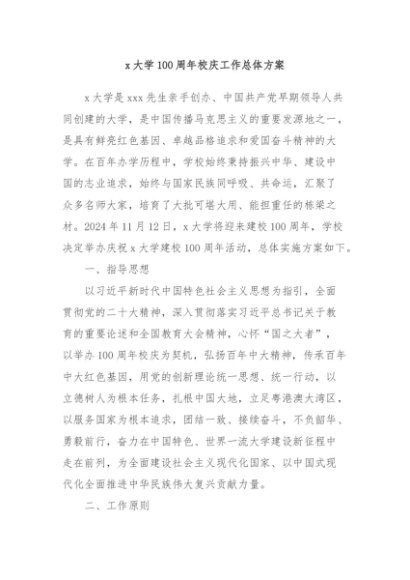 / 【七哥公文】2024年:x大学100周年校庆工作总体方案+更多免费公文+VX:QiGeGongWen2024