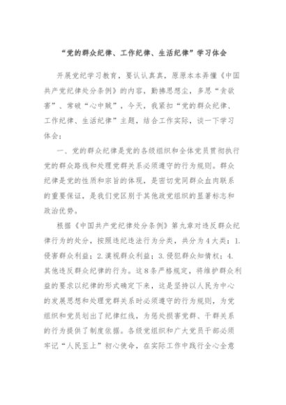 【七哥公文】2024年:“党的群众纪律、工作纪律、生活纪律”学习体会+更多免费公文+VX:QiGeGongWen2024