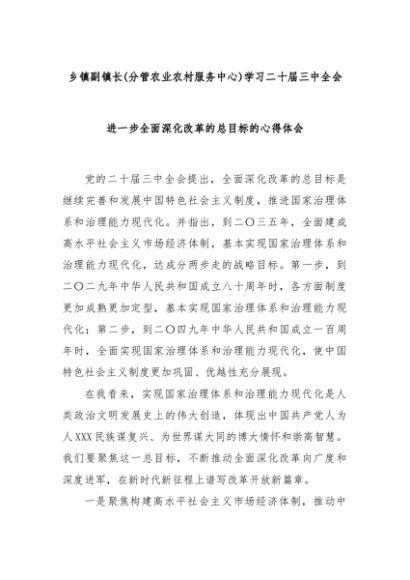 【七哥公文】2024年:乡镇副镇长(分管农业农村服务中心)学习二十届三中全会进一步全面深化改革的总目标的心得体会+更多免费公文+VX:QiGeGongWen2024