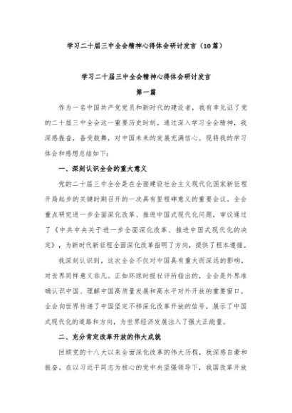 【七哥公文】2024年:(10篇)学习二十届三中全会精神心得体会研讨发言 (1)+更多免费公文+VX:QiGeGongWen2024
