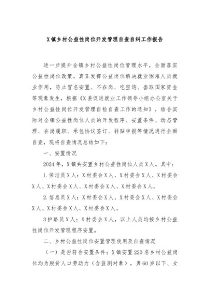 / 【七哥公文】2024年:X镇乡村公益性岗位开发管理自查自纠工作报告+更多免费公文+VX:QiGeGongWen2024