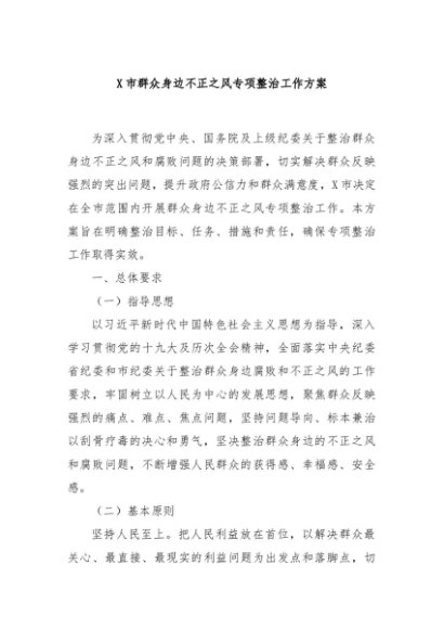 【七哥公文】2024年:X市群众身边不正之风专项整治工作方案+更多免费公文+VX:QiGeGongWen2024