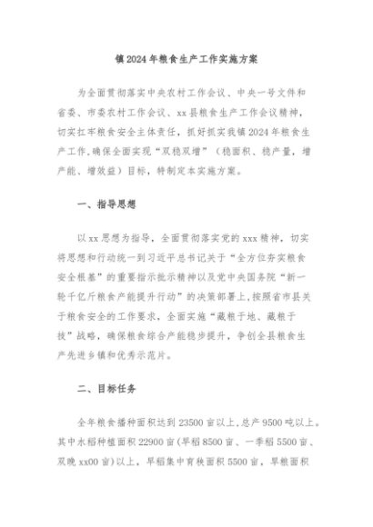 / 【七哥公文】2024年:镇2024年粮食生产工作实施方案+更多免费公文+VX:QiGeGongWen2024