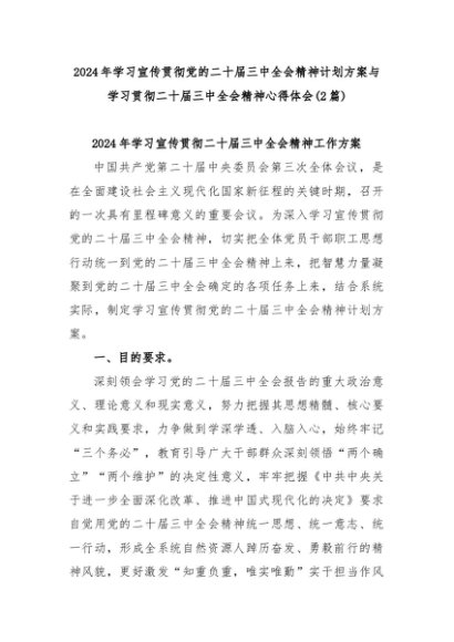 【七哥公文】2024年:(2篇)2024年学习宣传贯彻党的二十届三中全会精神计划方案与学习贯彻二十届三中全会精神心得体会+更多免费公文+VX:QiGeGongWen2024