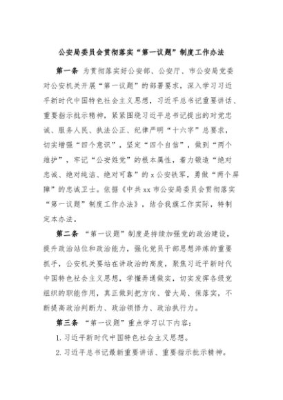 / 【七哥公文】2024年:公安局委员会贯彻落实“第一议题”制度工作办法+更多免费公文+VX:QiGeGongWen2024